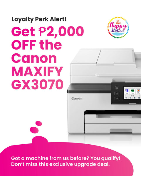 Get ₱2,000 OFF the Canon MAXIFY GX3070 — exclusively for customers who’ve purchased a machine from us before! 🖨️💕