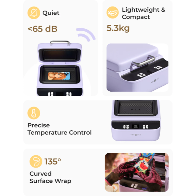 3D Full-Wrap Vacuum Heat Press : HTVRONT H17 heat press for cell phone cases equipped with advanced intelligent temperature control and vacuum heat press technology,delivers vibrant,bubble-free transfers. The heat press for phone cases fully wraps patterns around phone case sides and curves to eliminate unsightly edges for a pro finish. Works brilliantly on badges, coasters, keychains, and ceramic pieces too.